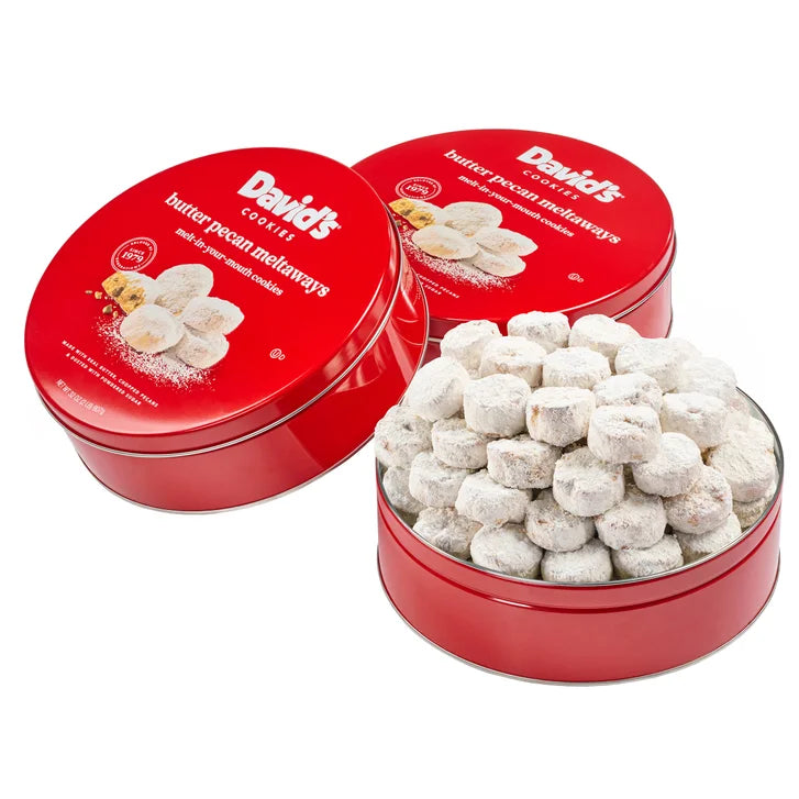- Butter Pecan Meltaways,32 oz, 3 Pack,No Preservatives,Certified Kosher OU-D,Contains Nuts,Includes: 3 Tins (32 oz. each),Enjoy with your morning coffee or tea,Cookies can be stored at room temperature for up to 120 days