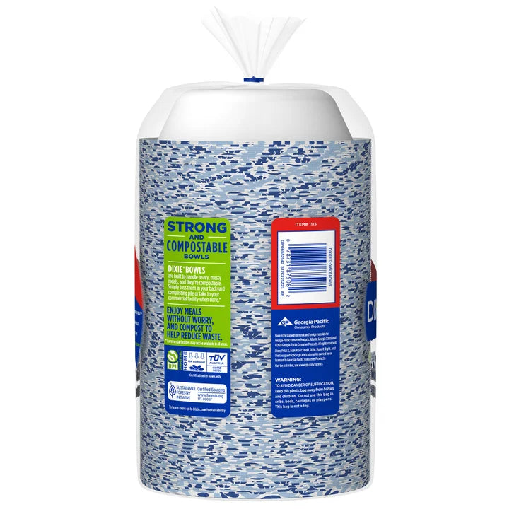 - Dixie® Everyday Paper Bowl,Maximum strength,12 oz capacity,Total Bowls: 175 ct,Dixie® Everyday Paper Bowls have a Soak Proof Shield to keep saucy, soupy, or greasy foods from soaking through the bowl,Small paper bowls are perfect for serving heavy, messy food such as chili, spaghetti or stews,Versatile and affordable, so you can focus on your day and not the dishes,Dixie® Everyday Paper Bowl may be recycled if you have access to a recycler that accepts paper or plastic products containing food residue. Such facilities may not exist in your area.,These bowls are microwave-safe and cut-resistant