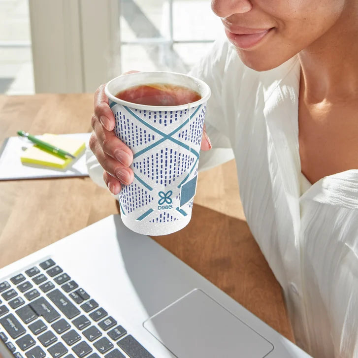 - Textured Non-Slip Grip,12 oz Insulated Paper Cup,160 Total Cups,Contains No Polystyrene Foam,12 oz capacity,Total Cups: 160 ct,Insulated coffee cups keep drinks hot and are comfortable to the touch,Dixie® To Go eliminates the need for costly double-cupping and beverage sleeves,Looks and feels like foam but contains no foam, and the outer lining is sturdy and comfortable to hold,The Sustainable Forestry Initiative® certified sourcing label is proof Georgia-Pacific is using fiber from responsible and legal sources. SFI® is a registered trademark owned by Sustainable Forestry Initiative, Inc. www.sfiprogram.org,Dixie® To Go Paper Hot Cups are USDA Certified Biobased Products,Dixie® To Go Paper Hot Cups may be recycled if you have access to a recycler that accepts paper or plastic products containing food residue. Such facilities may not exist in your area.,Compatibility: Dixie® 9542 Series Lids