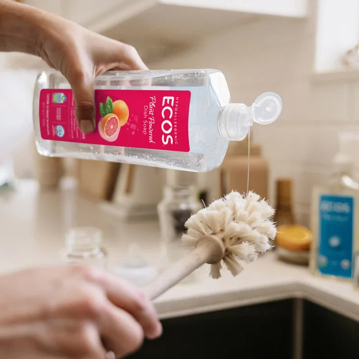 - Grapefruit,1 - 16 fl oz Bottle,1 - 96 fl oz Refill,112 Total fl oz,Hypoallergenic,CUTTING EDGE GREEN SCIENCE - The perfect combination of sustainable ingredients and powerful cleaning action. U.S. EPA Safer Choice Certified, Vegan. ECOS makes it easy to keep your kitchen stocked with cleaning supplies that are safer for your home.,PLANT POWERED CLEAN - Coconut-derived surfactants quickly break down grease and grime yet are gentle enough for delicate items like baby bottles.,A LITTLE GOES A LONG WAY - Squirt a quarter-sized drop of product on a sponge to tackle dirty dishes. Our strong suds fight through dried-on food to leave your dishes, glassware, & cutlery squeaky clean (& plenty of soap left in the bottle for next time).,DERMATOLOGIST TESTED - Our clean formula is hypoallergenic and pH-balanced to care for your hardworking hands. Made without dyes, 1,4-dioxane, parabens, phosphates or 500+ other nasty ingredients.,CLEAN FORMULAS WITH VISIBLE RESULTS - Since 1967, ECOS has created safer, powerful products by using enzymes found in nature. All our dish products are made in a carbon neutral, water neutral, TRUE Platinum Zero Waste factory using 100% renewable energy.