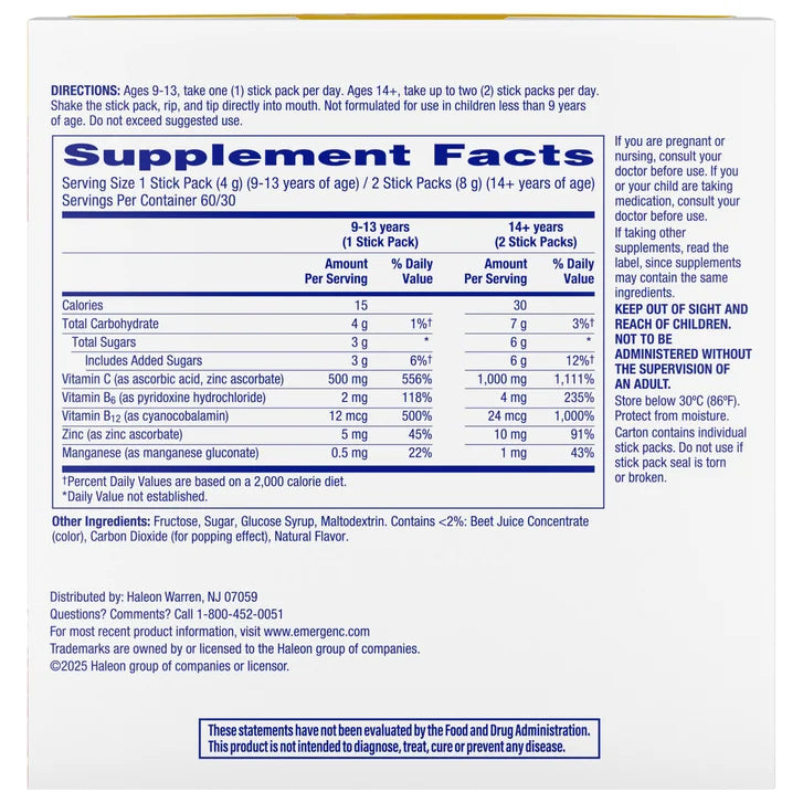 - One-The-Go Immune Support,Contains Vitamin C, B-Vitamins, Zinc and Manganese,Vegetarian, Gluten-Free and Caffeine-Free,No Water Needed