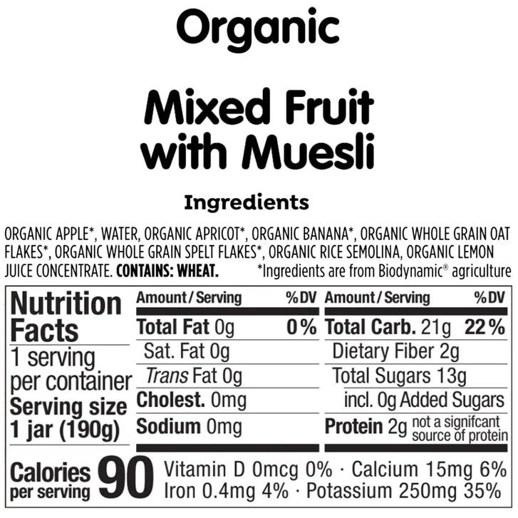 - 24 Total 6.7 oz. Jars,12 Jars - Apple & Plum,6 Jars - Veggie Risotto,6 Jars - Mixed Fruit w/ Muesli,USDA Organic