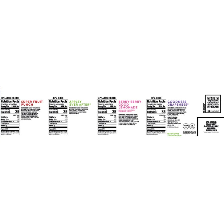 - Juice Drink,USDA Organic,From Concentrate,6 oz Boxes,40-Count,Variety pack: 16-Super Fruit Punch, 8-Appley Ever After, 8-Berry Berry Good Lemonade, 8-Goodness Grape