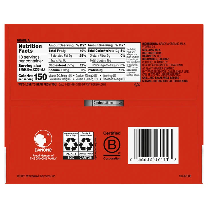 Horizon, Organic Whole Milk, 8 oz, 18-Count