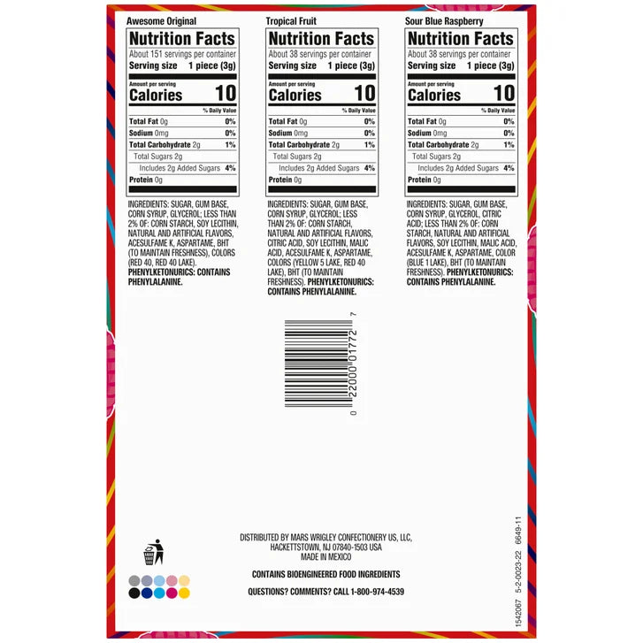 - Bubble Gum Tape,Variety Pack Includes: 2-Sour Blue Raspberry, 2-Tangy Tropical, 8-Awesome Original,Artificially Flavored
