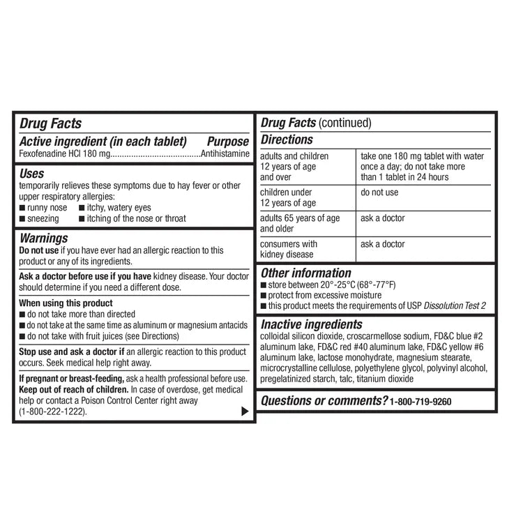 - Fexofenadine HCl 180 mg.,Compare to Allegra® Allergy Active Ingredient,#1 Allergist Recommended Active Ingredient,Indoor/Outdoor Allergy Relief,Non-Drowsy