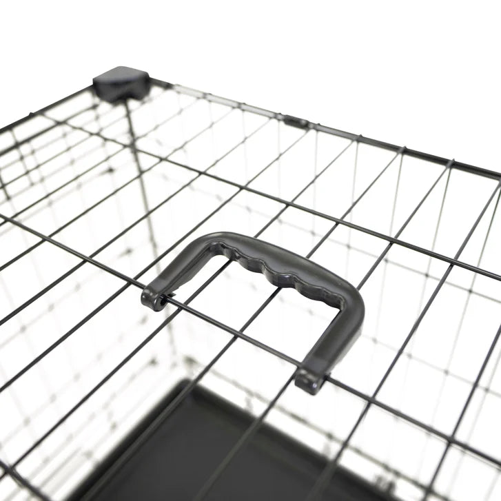 - Secure Door Latches,Convenient Handle Makes it Easy to Move,Rust-resistant E-Coating for Durability,Folds Down Flat, Clean Easily with Removable Pan,Unique Side Sliding Door with Smooth Rail System