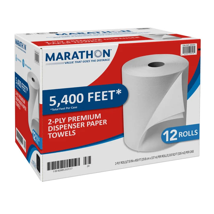 Marathon Dispenser Paper Towels, 2-Ply, 450 ft Rolls, 12-count