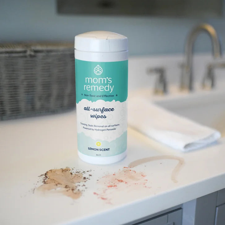 MomRemedy Hydrogen Peroxide All-Surface Cleaner and Stain Remover Wipes, Lemon, 30-count, 5-pack