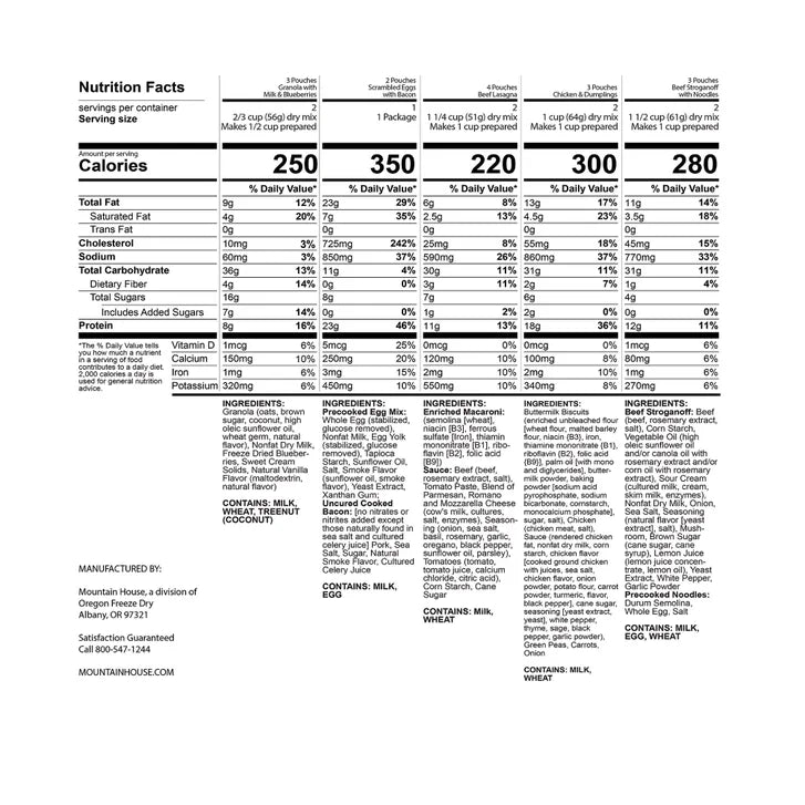 Mountain House Emergency Meal Kit 15-Pouch Assortment (28 Total Servings)
