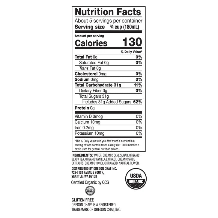 - Original Blend of Premium Black Tea, Vanilla, Chai Spices and Honey,32 fl oz cartons,3 count,Net Weight: 3 qt