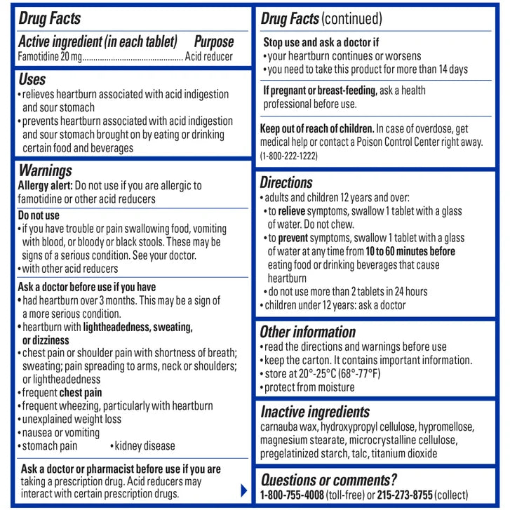 - Two Bottles, 50 Tablets Each,Maximum Strength Heartburn Relief Medicine,For Heartburn Prevention & Relief,20mg Famotidine to Reduce & Control Acid