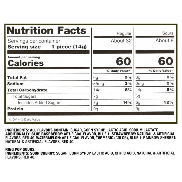 - Kosher,Individually wrapped,5 Flavors,Flavors: Blue Raspberry, Strawberry, Watermelon, Rainbow Sherbet, & Sour Cherry.