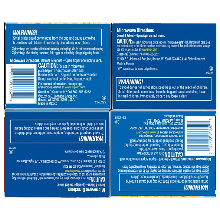 - Slider Bags,84 - Quart Storage Bags,60 - Gallon Storage Bags,144 Total Bags,Stand & Fill Design,Variety slider storage bags,BPA free,Microwave safe